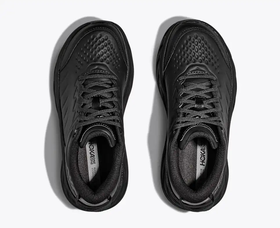 The Hoka Bondi SR black / black shoe offers unrivaled comfort and support. The carbon fiber construction provides superior durability and the sleek black and white design adds a touch of elegance. With Hoka's Bondi technology, this shoe offers maximum cushioning and stability for all-day wear. Perfect for athletes or those on their feet all day.