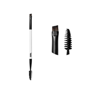 A versatile dual-ended eyebrow brush designed with angled bristles and a spoolie, perfect for filling and detailing brows with both powder and cream formulas.