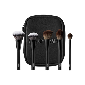 A five-piece travel brush set designed for both on-the-go and everyday application, featuring a convenient custom case.