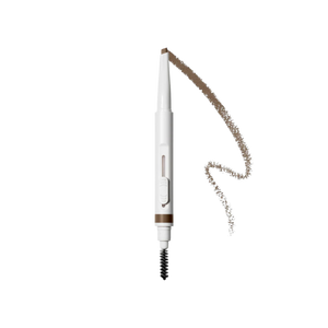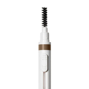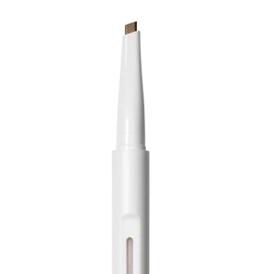A retractable brow pencil featuring an innovative blade tip designed for precise, hair-like detail and dimension, complemented by a spoolie for effortless blending.