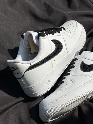 BLACK AND WHITE CRYSTAL SWOOSH AF1
