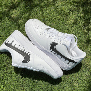 Bring a splash of style to your footwear collection with these BLACK DRIP SWOOSH AF1s! The Nike classic is given a funky update with a chic black drip swoosh filled with detailed shading, providing a look that's sure to make heads turn! Get ready to drip-drip-drip in the fashion stakes!