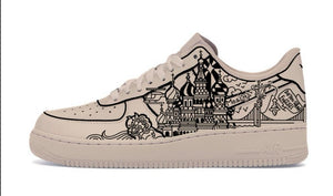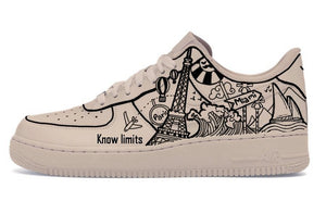 Jet-set in style with these one-of-a-kind AF1s that take your feet on a global tour. Dipped in rich coffee tones and hand-painted with iconic landmarks spanning from Japan to New York, Paris to Australia, each pair tells a story of adventure. Perfect for the wanderer who refuses to stay grounded, these sneakers embody the spirit of exploration and boundless possibility. Your next adventure starts here.