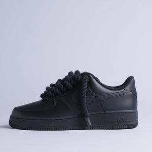 Step up your sneaker game with the DOUBLE BLACK ROPE AF1! These black Af1s come with our fan favourite chunky rope laces, making them the perfect addition to any sneaker collection. Step out in style and comfort with these must-have kicks. (No? Af1so-lutely!)