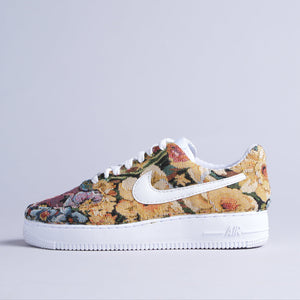 Add a touch of whimsy to your sneaker collection with our hand-stitched flower Jacquard fabric on Nike AF1. Stand out from the crowd with this unique and playful twist on a classic triple white AF1. Perfect for the fashion-forward and the young at heart.
