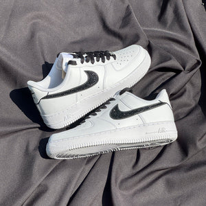 Nike Air Force 1 Low BLACK AND WHITE CRYSTAL SWOOSH