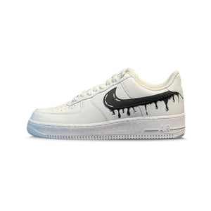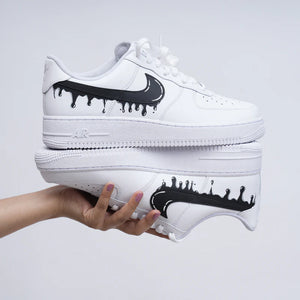 Bring a splash of style to your footwear collection with these BLACK DRIP SWOOSH AF1s! The Nike classic is given a funky update with a chic black drip swoosh filled with detailed shading, providing a look that's sure to make heads turn! Get ready to drip-drip-drip in the fashion stakes!