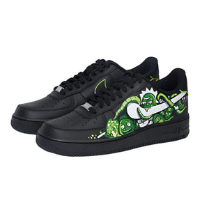 Step into the multiverse of Rick and Morty with our hand painted black Air Force 1's bringing the show's characters to life. Step into the multiverse of Rick and Morty.