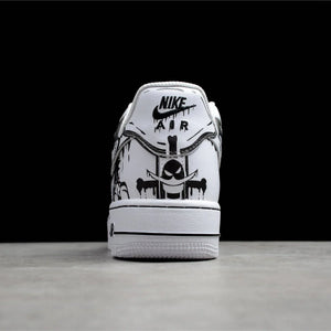 The One Piece AF1 B&W sneakers. Featuring hand-painted artwork from the iconic comic, these nike Af1s are sure to turn heads.