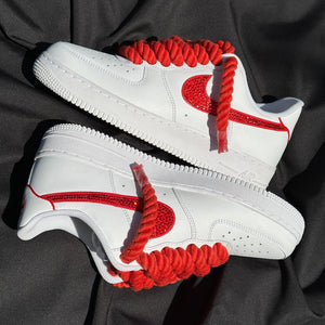 Rope Laced AF1s embedded with red Swarovski crystals on the swoosh. this exclusive pair of MDCustoms comes along with our fan favourite thick rope laces .