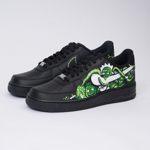 Step into the multiverse of Rick and Morty with our hand painted black Air Force 1's bringing the show's characters to life. Step into the multiverse of Rick and Morty.