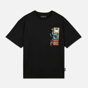 Relive the nostalgia with our TIME CAPSULE T-SHIRT! Featuring iconic symbols like a floppy disk, camera roll, and cassette, this shirt will transport you back in time. Perfect for those who want to embrace the past while staying stylish. A must-have for any vintage lover!