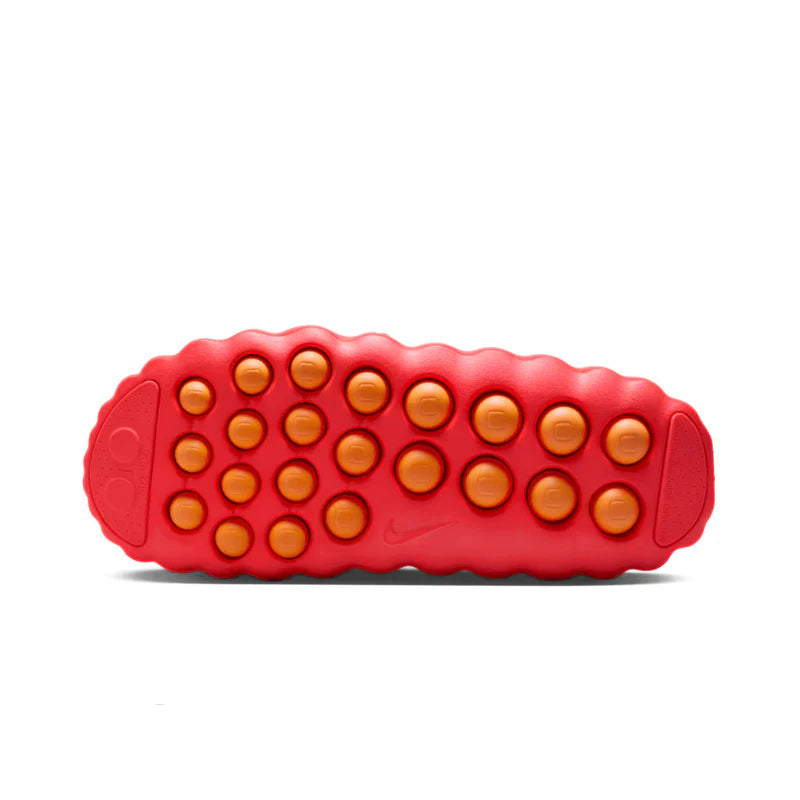 The Nike Mind 001 Slide in Solar Red radiates bold simplicity with a rich Solar Red strap crafted from soft, matte synthetic that wraps the foot in a warm, vibrant hue, giving a striking yet clean look that stands out in casual wear. The broad strap is lightly padded for comfort, its surface smooth with a subtle sheen that complements the energetic color. Underfoot, the contoured footbed features a fine texture that cradles the foot, enhancing traction and comfort with every step, while the sculpted foam sole in matching Solar Red carries fluid lines that echo the strap’s streamlined design. Minimal Nike branding is embossed on the strap in tone-on-tone red for an understated signature touch, and the lightweight construction ensures effortless slip-on ease, making these slides a dynamic choice for relaxed, everyday style.