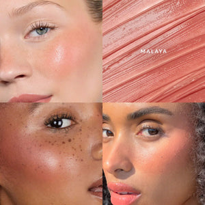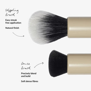 This exclusive set includes two versatile blush shades that are suitable for all skin tones. Each shade can be worn alone or layered together for a custom look. The Duo Brush is designed to seamlessly blend cream products for a natural, buildable finish.