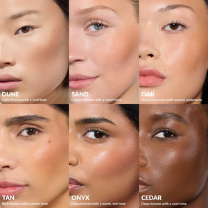 An easy-to-use, smooth, buildable cream bronzer with a dewy finish that melts into skin for a warm, sunkissed glow or natural definition.