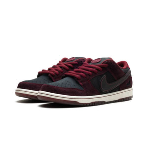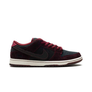 The Nike SB Dunk Low Pro x Riot Skateshop is a collaborative sneaker that pays homage to Bordeaux's rich winemaking heritage and skate culture. Released on January 21, 2025, this model features a colorway of Mahogany, Dark Beetroot, Team Red, Sail, and Night Maroon. The upper combines premium suede and leather materials, offering both durability and a luxurious feel. Distinctive details include contrast stitching and Riot Skateshop's dog logo on the heel panels, tongues, and insoles. The sneakers come with red and black laces, allowing for customization