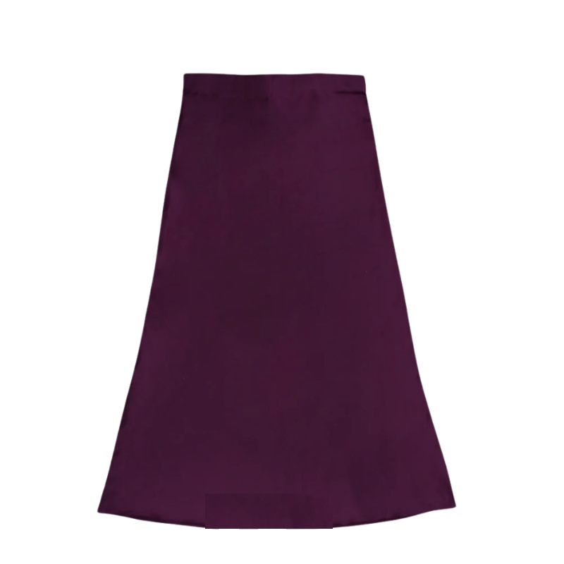 Elegant with a touch of edge. This wine satin midi skirt features a clean silhouette and fluid drape that flatters every step