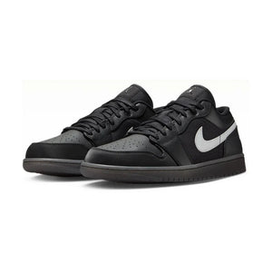 The Jordan 1 Low Black White Dark Smoke Grey is a sleek and versatile addition to the iconic Air Jordan lineup. This low-top silhouette features a classic color combination that effortlessly complements any outfit. The upper is crafted with a mix of premium materials, including smooth leather and durable synthetic overlays, ensuring both style and longevity. The black base is accented with white details on the Swoosh, heel, and midsole, creating a striking contrast that catches the eye.