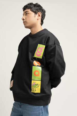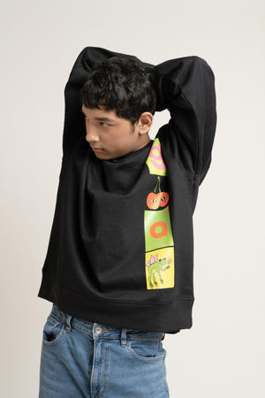 Ribbed collar, cuffs and bottom. Printed front side panel. Industrial Washed. Cracked Print Material : 100% Cotton Colour : Black