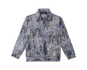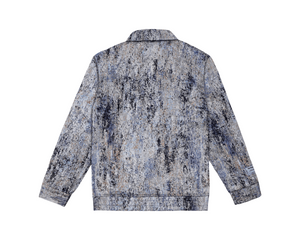 Featuring an ocean palette, an abstract design inspired by the dynamic waves and serene hues of the sea, this jacket blends artistic flair with a contemporary silhouette.