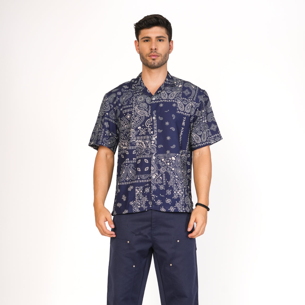 Introducing The Khwaab's bandana print logo shirt, a piece that showcases a intricate bandana print with paisleys, seams and the brand's logo, featuring a style of relaxed fit with button closure. Made with Rayon.
