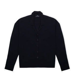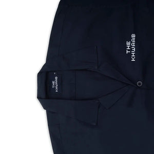 Navy blue full sleeve revere shirt, made of ultra smooth poplin fabric.