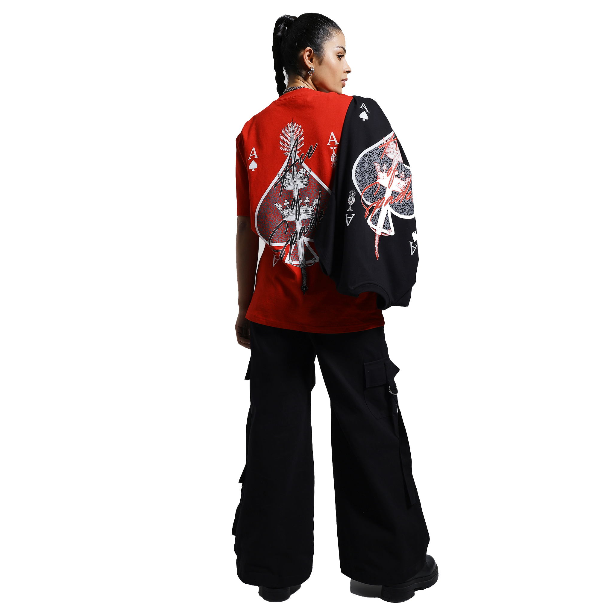 Play your hand in luxury streetwear with the ACE OF SPADES oversized tee. This bold
