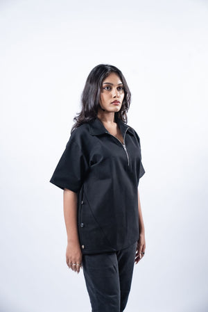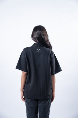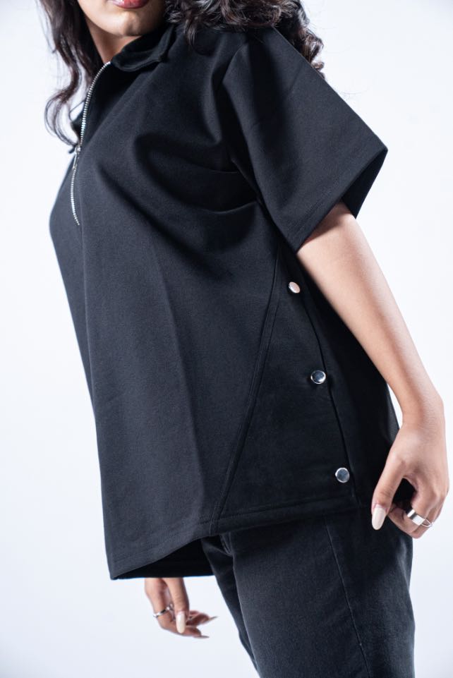 Kreflct’s Buttons Polo keeps things clean with just the right amount of detail. It features a zip-up front and a soft vegan suede collar, finished with button detailing on the sides on a suede panel. The relaxed fit makes it easy to wear, while the contrast textures give it a more polished feel. It’s a versatile piece that works across looks and settings.