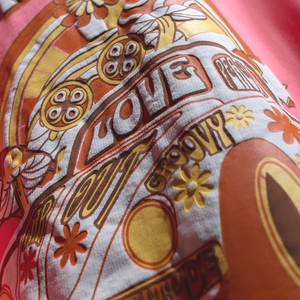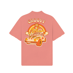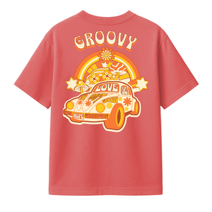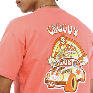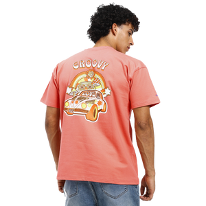 Loose-fittining t-shirt in peach with a round neckline and short sleeves.Puff print on the front and back.