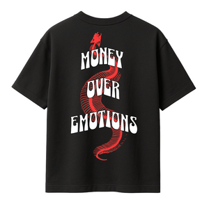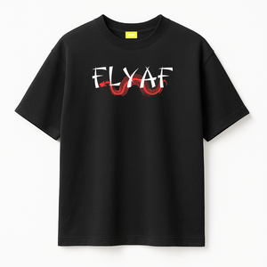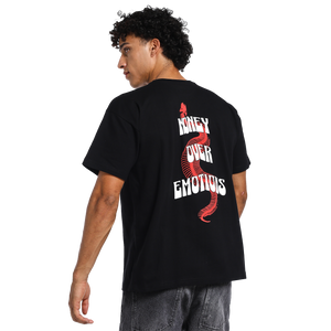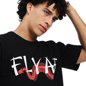 Loose-fittining t-shirt in black with a round neckline and short sleeves.Puff print on the front and back.