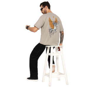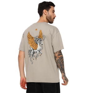 Legends don’t walk they fly.The Skyborn tee captures the untamed freedom of a golden-winged Pegasus mid-flight. Wrapped in ethereal scrolls and rendered in clean luxury tones, this piece is designed for those who carry myth-level energy in a modern world.