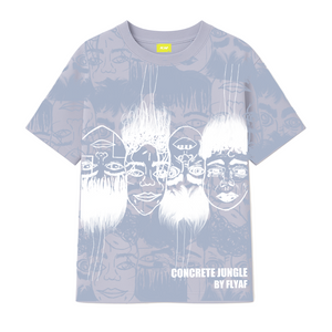 The Static Jungle Tee, available in bold red and sleek blue on butter-soft 100% cotton with an oversized fit, electrifies the concrete jungle narrative through human faces oriented upward and downward, their hair wildly flying with static energy that mirrors the frenetic pulse of city dwellers trapped in urban frenzy— a super-premium piece that invites you to feel the raw, charged essence of metropolitan life while flying as fuck above the chaos.