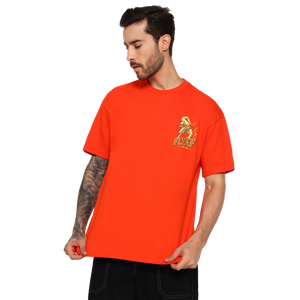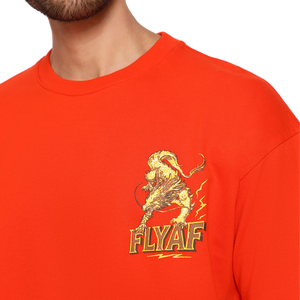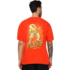 The Ember Beast tee roars with untamed energy. Drenched in a deep bloodorange tone, it features an electrified golden dragon midstrike symbol of power, ambition, and god-tier confidence. With dynamic lightning bolts and 3D FLYAF typography, this design