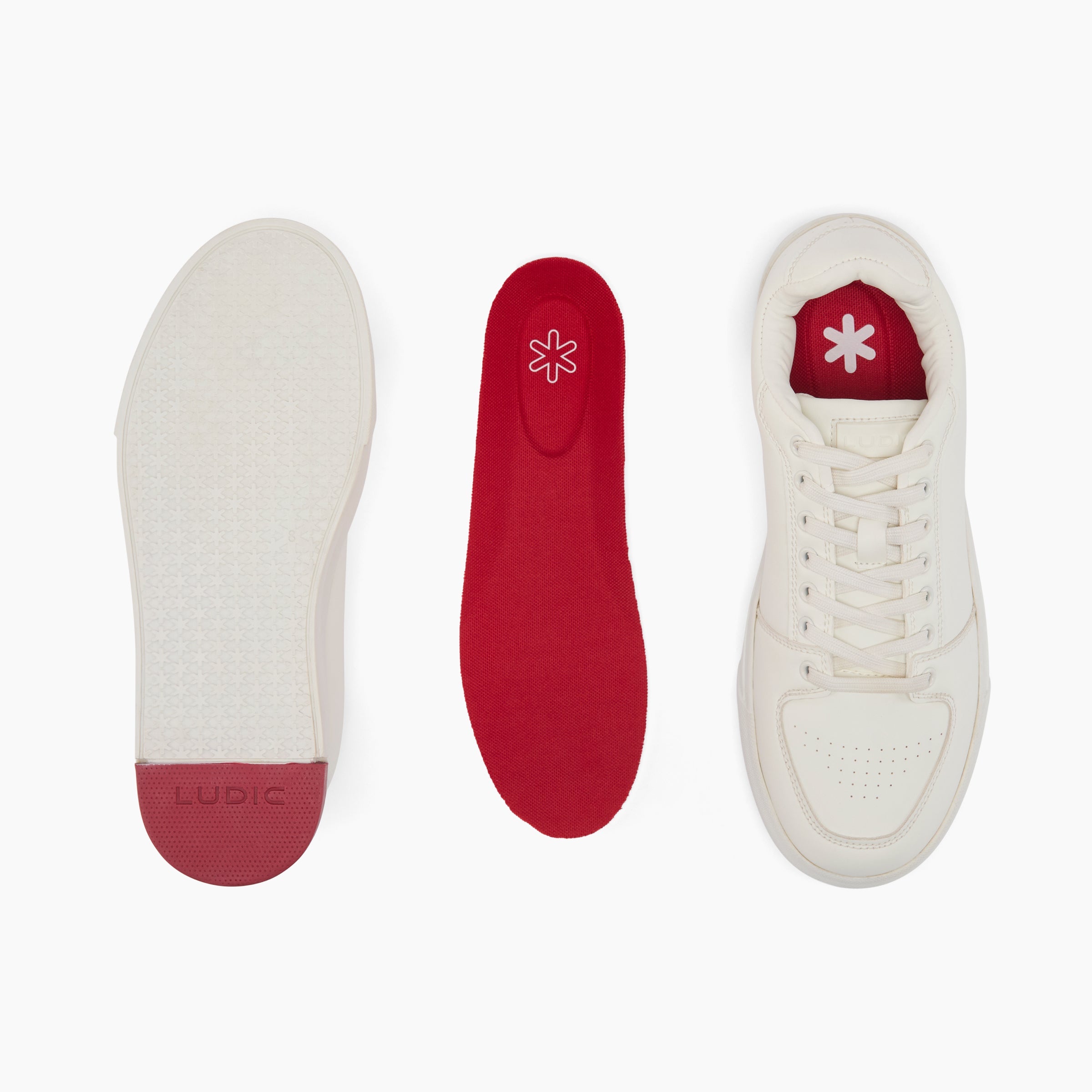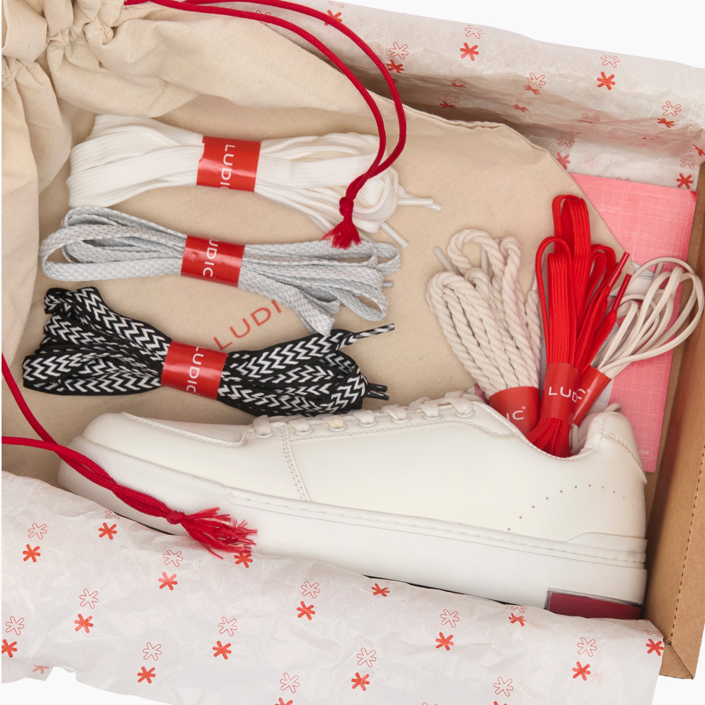 Vegan leather sneakers with a roomy fit, offering timeless monochrome style and the highest comfort. Laces crafted for an explorative style on the go.