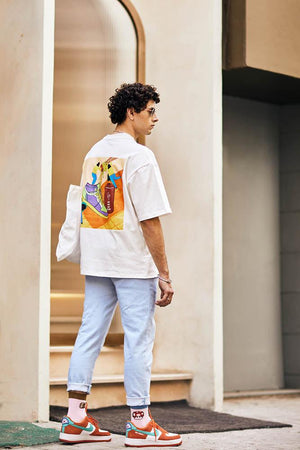 Note: For a relaxed, comfortable fit, please go a size up, and for an oversized fit, please go two sizes up.