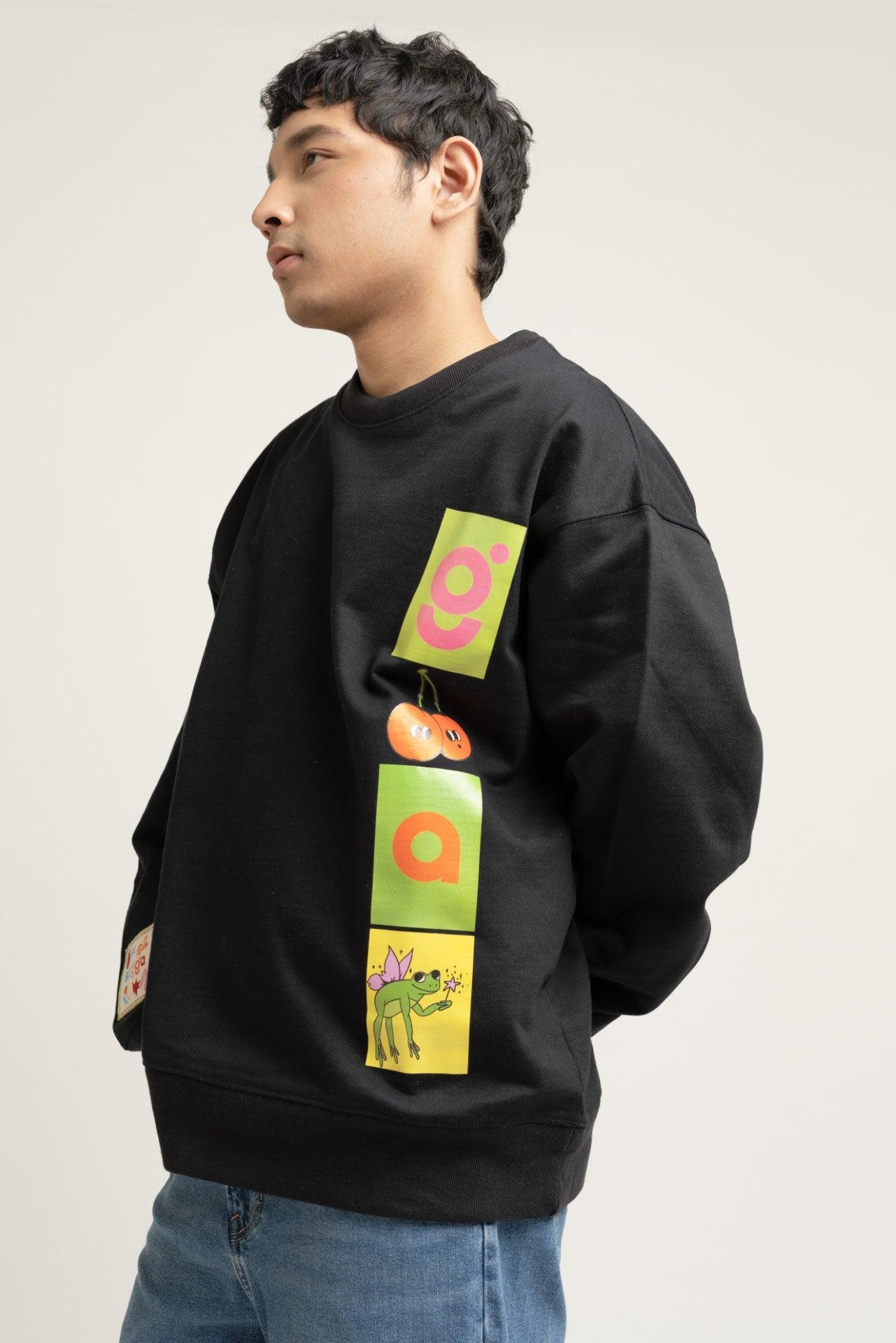 Ribbed collar, cuffs and bottom. Printed front side panel. Industrial Washed. Cracked Print Material : 100% Cotton Colour : Black