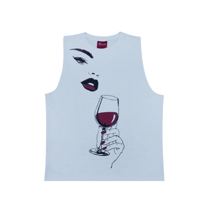 Pour it up, wear it loud. This unisex sleeveless tee is made from 100% cotton and features a bold screen print of a wine glass and red lips — a whole mood in one look. Easy to style, easier to steal the spotlight in.