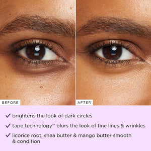 To conceal dark circles, dot the Shape Tape Concealer onto undereyes and blend upward. For a full face of flawless coverage, apply directly to redness, blemishes, or imperfections and blend. Complete your look by applying the Fake Awake Eye Highlight to the inner corners of the eyes, along the brow bone, on the waterline, down the bridge of the nose, and across the Cupid's bow, then use the built-in smudger to soften and blend.