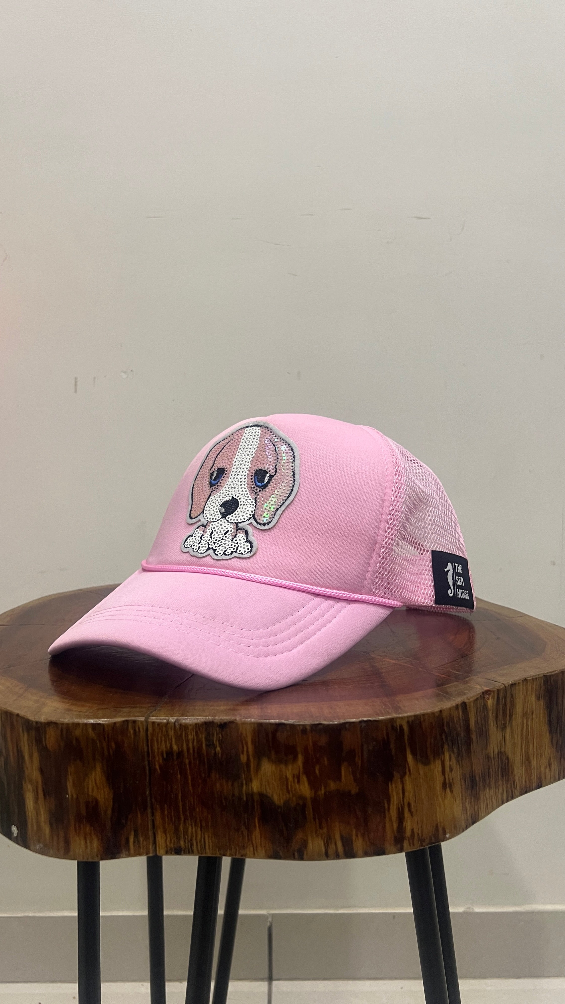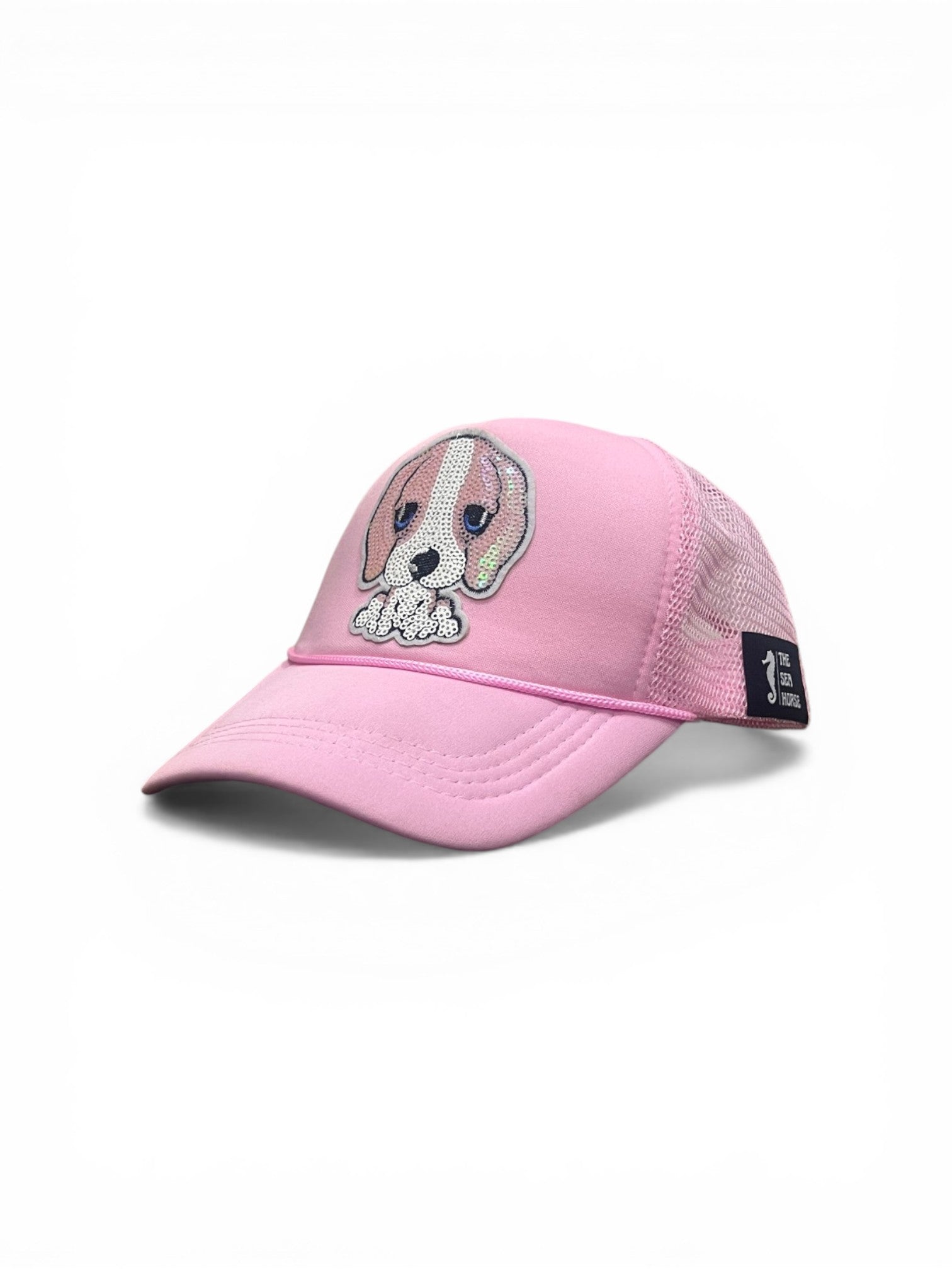 THE SEA HORSE brings timeless headwear designed for everyday style and comfort. This 5-panel trucker cap features a dog sequin embroidery and perfect for flaunting your dog love.