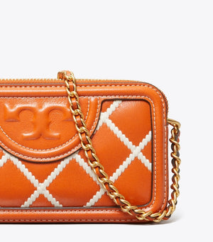 Tory Burch Fleming Pop Quilt Double-Zip Mini Bag SPRING SPICE
