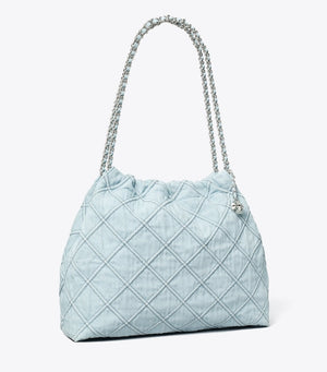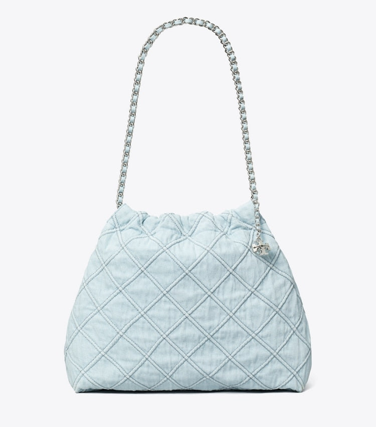 Tory Burch Fleming Soft Denim Hobo Bag Seltzer