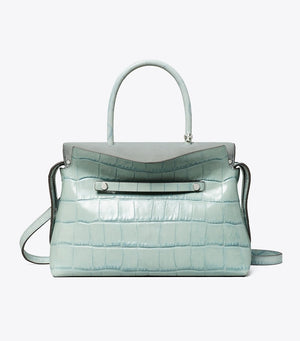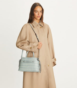 Tory Burch Mercer Croc-Embossed Satchel Blue Celadon