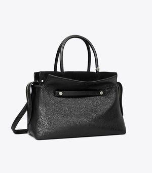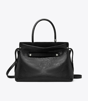 The Mercer Distressed Satchel is softly deconstructed with layers of leather and rolled suede. Discreet hardware marks sleek zippered pockets inside and out. Carry it by the top handles or go hands-free with a removable crossbody strap.