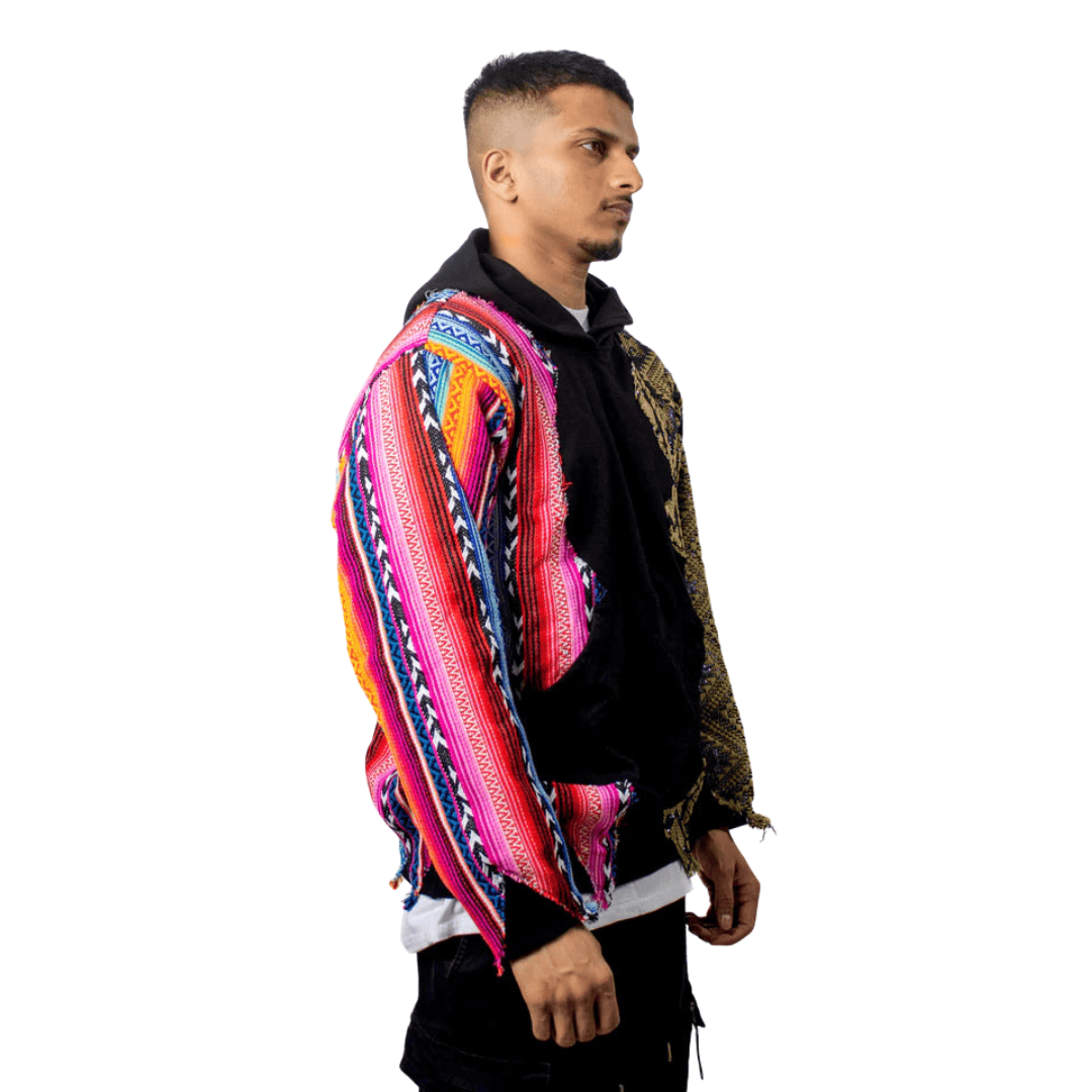 Home WINTER COLLECTION Black Artistic Stiched Hoodie