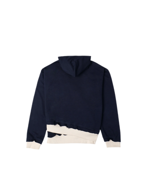 Halo sweatshirt - crafted from a mid-heavy weight fabric, representing the khwaab's new functionality with an asymmetrical silhouette - double ribbed hood hem, with hand distressing finish on hem and cuffs.