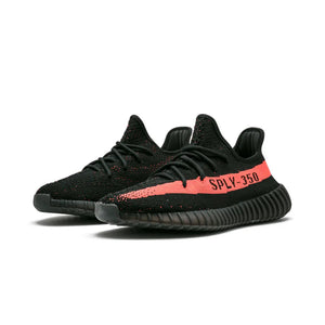 The Adidas Yeezy 350 V2 Core Black Red has recognisable design elements that helped the model become well-known today. The upper is constructed of a black Primeknit material for breathability. For extra comfort, the whole BOOST cushioning technology is housed under a black ribbed midsole. Last but not least, each pair of the Adidas Yeezy Boost 350 V2 Core Black Red features the signature "SPLY-350" knitted along the lateral side.