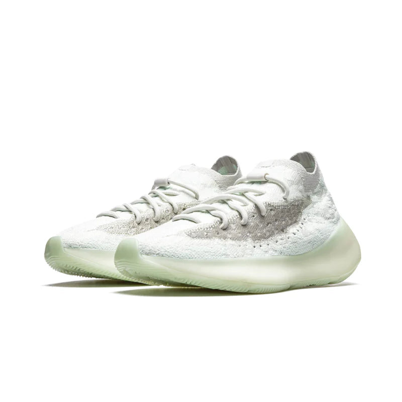 The adidas Yeezy Boost 380 Calcite Glow features a futuristic design that merges comfort with visual impact. Its Primeknit upper showcases a marbled mix of white and light grey tones, creating a cloud-like texture that wraps the foot in a snug, adaptive fit. A semi-translucent stripe runs along the lateral side, adding dimension and breathability while glowing in the dark for a striking nighttime effect. The midsole houses full-length BOOST cushioning, delivering exceptional energy return and all-day comfort with a smooth, responsive ride. A translucent rubber outsole enhances traction and stability, while the sock-like construction ensures a seamless on-foot feel. The result is a sleek, modern silhouette that embodies Yeezy’s signature blend of minimalism, innovation, and performance-driven design.